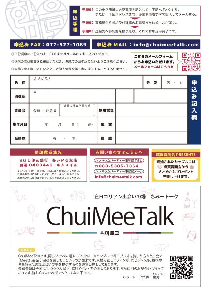 参加費 :男性¥12,000(青商会会員¥10,000)女性¥8,000